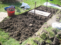 Now that summer is on the way, I have been working on our garden. Last year it was more like a wild meadow (see the first photo on my "Summer Days" post) but now that it has been tamed I am putting in some vegetable patches. The plan is to do one 5'x20' bed this year, prepare another two ready for planting for next year and maybe do a fourth the year after. Plus a narrow bed along the fence. I've almost finished double digging the first bed and tomorrow will hopefully do the fence one (which will be about 1'x20') and plant my seeds (some direct and some in pots for transplanting once the frost risk is gone). We've also managed to remove the pampass grass visible in the picture below and currently that space is temporary home to two rhubarb plants. I'm so looking forward to eating rhubarb!